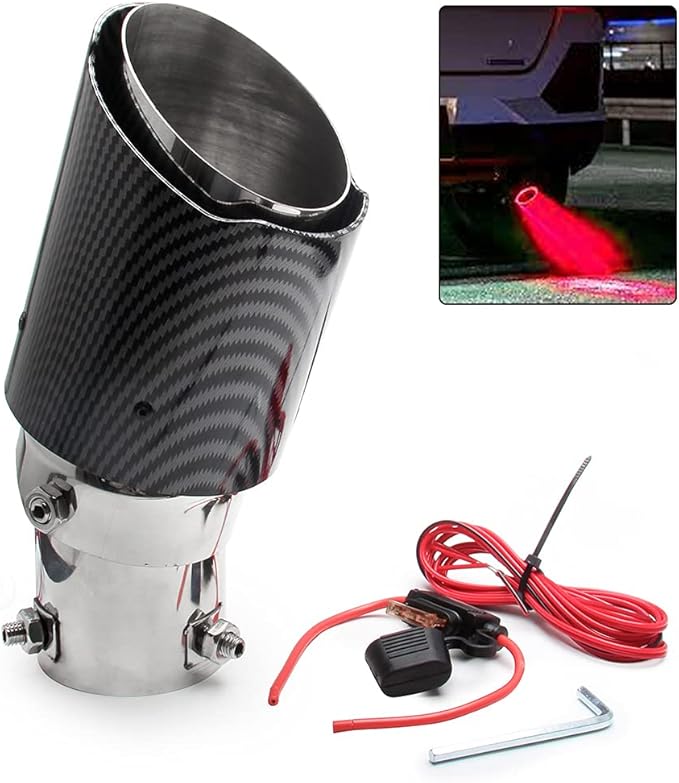 マフラーカッター LED 軽自動車 下向き カーボン調 上下向き 調整可能 ライト付き 排気 パイプ 発光 光る カーボン テールパイプ径 35~63mmアルミ製 MT AT 汎用 ドレスアップ オーバル型 ストレート式 赤