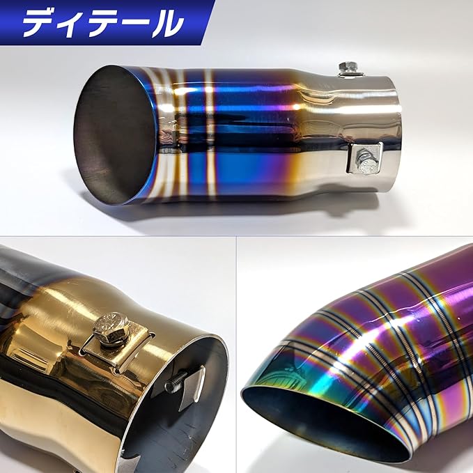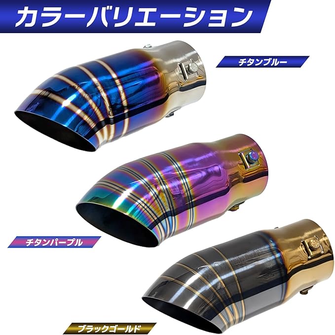 汎用 マフラーカッター ステンレス ターンアウト 下向き 下出し 3点ボルト 内径35mm~63mm カスタム パーツ チタンブルー