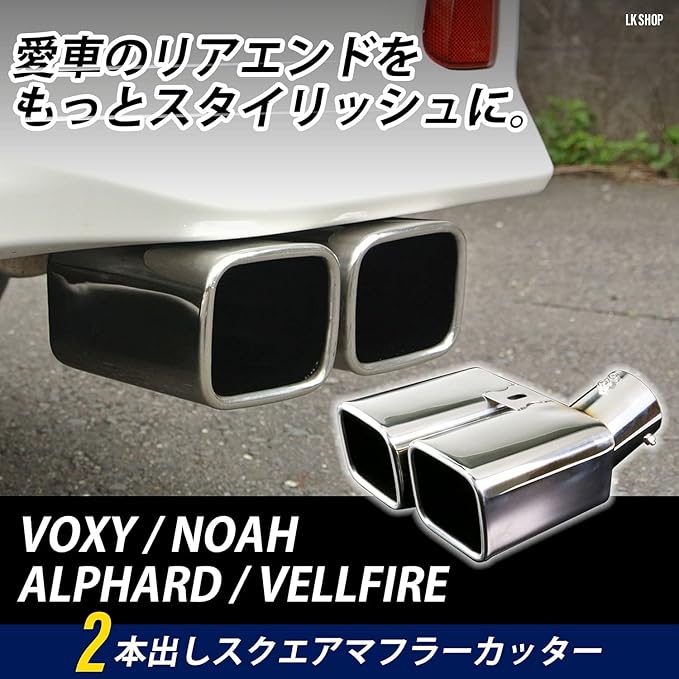 アルファード ヴェルファイア 30系 マフラーカッター 2本出し ステンレス製 スクエア 角型 VOXY ヴォクシー 80系