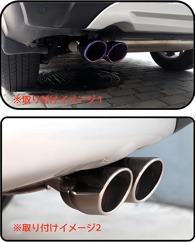 マフラーカッター 汎用 軽自動車 乗用車 車 ドレスアップ 下向きマフラー用 2本出し カスタムパーツ DIY 車外装パーツ カー用品 初心者 改造 簡単取り付け ステンレス製 (ブラック)