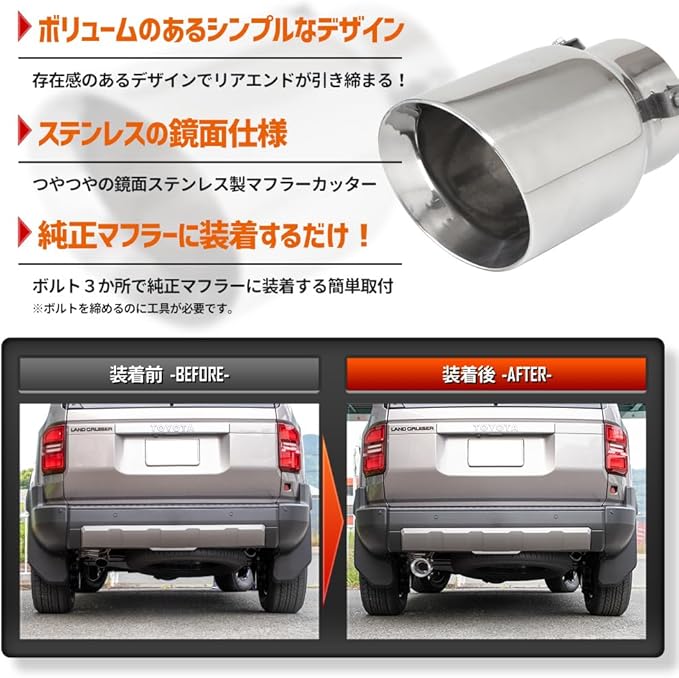 CORSA ランドクルーザー 250 適合 マフラーカッター 1本出し ランクル250 メッキ カスタム 外装 パーツ アクセサリー ドレスアップ ステンレス トヨタ (250系 ランドクルーザー)