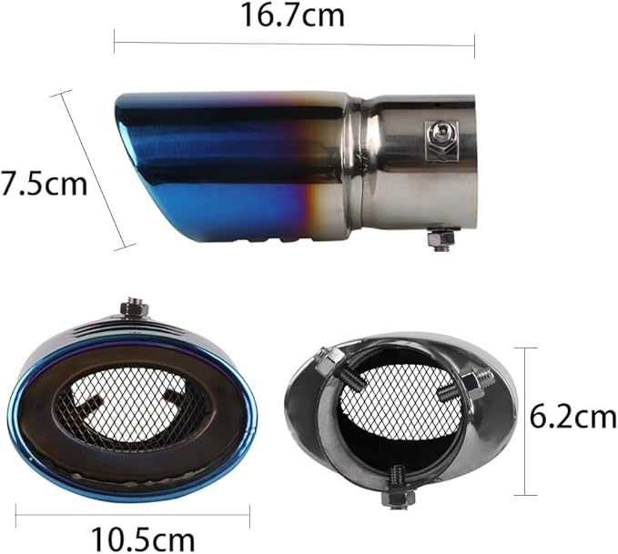 装着サイズ範囲:装着可能マフラーサイズ:38㎜Φ~53mmΦ(大体排気量1.0-2.0Lの乗用車に適応)。汎用タイプなので、取付直径約6.2cm(2.5inch)以下なら、バンパーの干渉などが問題なければ取付可能、ご購入前にお持ちの車両のエキゾーストパイプ外径を必ず計測してください!