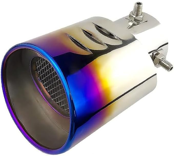 車用 マフラーカッター ストレート式 口径2.5インチ エキゾーストチップ ステンレス製 斜めカット 大口径 排気管 メッシュ付き マフラー パイプ テールパイプ 外装 パーツ カスタム 大型車 軽自動車 取付直径38-53mmに対応 ブルー