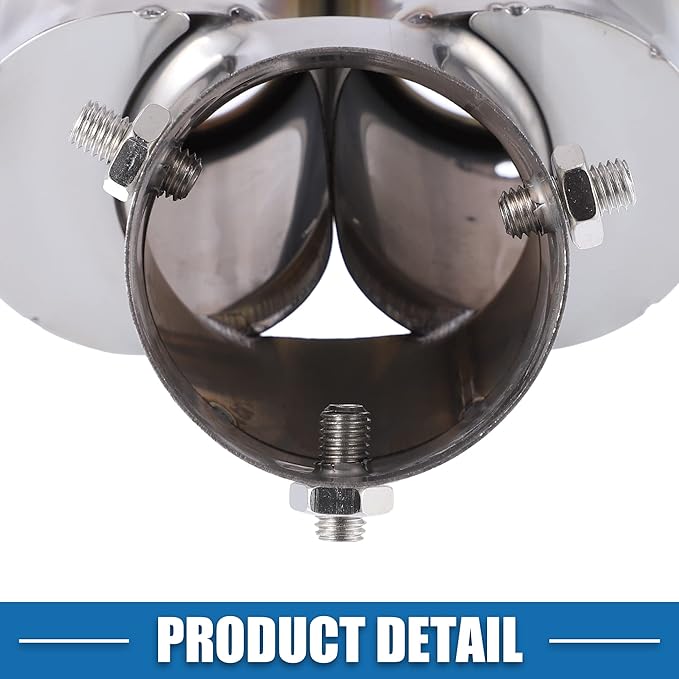 取り付け簡単 - 1. テールパイプの表面をきれいにします。2. 先端を排気管にスライドさせます。3. ネジを締めて排気ノズルを固定します。
