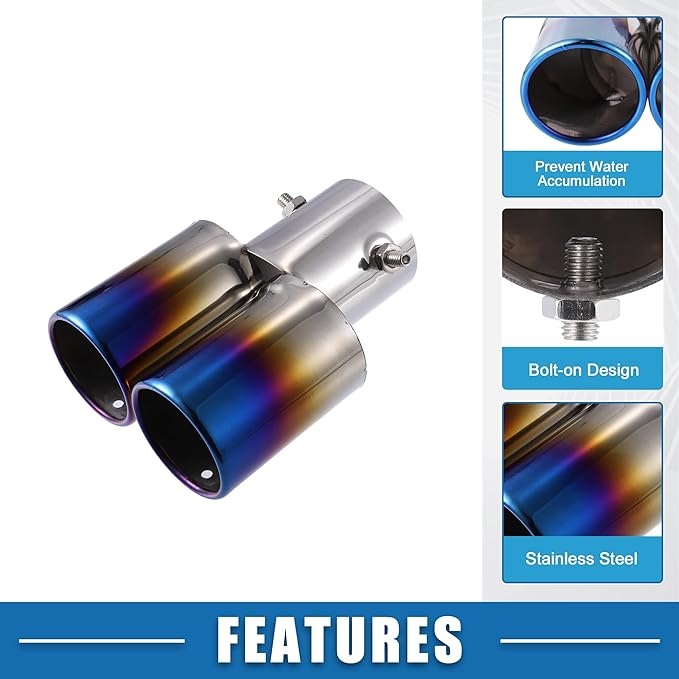 マフラーカッター マフラー エキゾーストパイプ 排気管 2本出し ダブルアウトレット 汎用 車外用品 マフラーチップ テールパイプ ボルトオン 金属 適用径61mm チタン焼き調