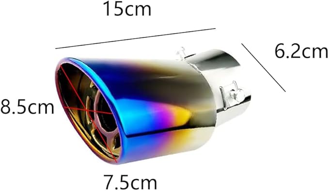 装着サイズ範囲:装着可能マフラーサイズ:38㎜Φ~53mmΦ(大体排気量1.0-2.0Lの乗用車に適応)。汎用タイプなので、取付直径約6.2cm(2.5inch)以下なら、バンパーの干渉などが問題なければ取付可能、ご購入前にお持ちの車両のエキゾーストパイプ外径を必ず計測してください!