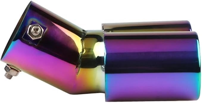 車外用品 下向き式 マフラーカッター 2本出し 排気管 エキゾーストチップ マフラー パイプ テールパイプ径38-53mm適応 口径2.5インチ 外装 パーツ ドレスアップ カスタム ステンレス製 脱落防止ワイヤー付き (ブルー)