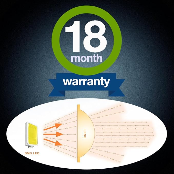 【耐久性抜群】アルミニウム製ヒートシンクを使用し、放熱性能が向上した為、さらなる明るさと長寿命を実現しました。従来のLEDランプより高品質SMDチップを採用しチップ自体の耐熱性が高くなり、50000時間以上も使え、普通のハロゲンよりずっと長持ちします