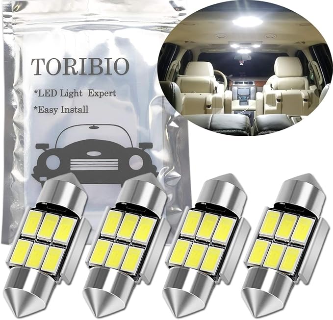 TORIBIO 31~32mmは使用可能 4個入り 無極性 車内ランプ T10 31mm 6SMD LEDルームランプ Festoon 6418 C5W 1.25インチ31mm Canbus エラーフリー 両口金タイプ 車 ルームランプ led (ホワイト)