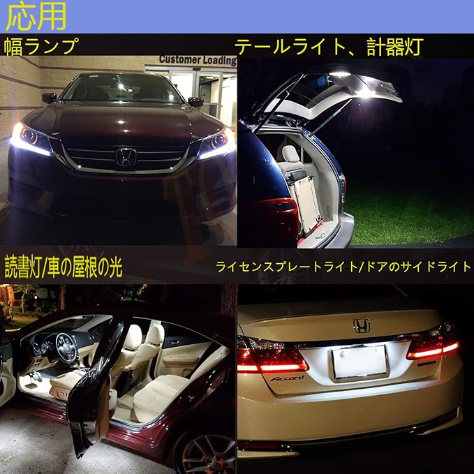 【汎用バルブ】汎用タイプで、取り付け車種・箇所のサイズとソケットが合えば取り付け可能です。マップランプ、ルームランプ、ライセンスランプ、カーテシランプ、ラゲッジランプ、トランクランプ、テールランプなどの交換ができます。(一部の車両では球切れ警告灯の点灯や異常点灯が発生する場合があります)