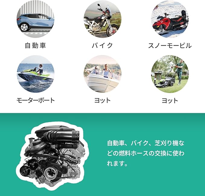 ❤❤欠点のないガソリンホースがここに登場!この高品質なガソリンホースは、耐熱性、耐油性、耐圧性、難燃性、摩耗性、腐食性に優れたゴム素材を使用しています。さらに、ステンレス鋼のホースクランプにより、防水性、錆び防止性、耐腐食性、耐久性が高まっています。バイク、自動車、芝刈り機、建設機械など、幅広く使用可能です。前もって元機器のサイズを確認し、ホースクランプを効果的に使用できるようにしましょう。購入前に気をつけるべき点もありますので、ご購入前に一読ください。