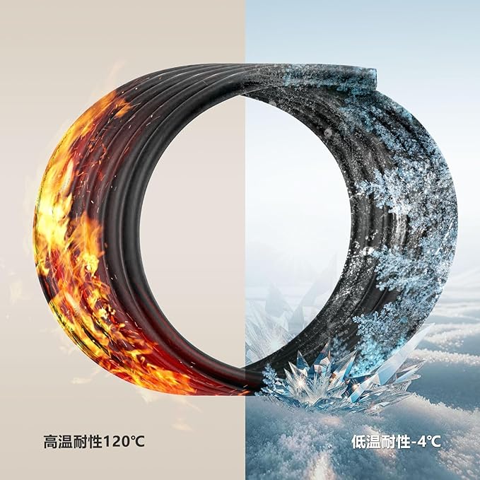 【三重構造で丈夫】✦しっかりの三重構造で、ホースはとても丈夫;✦内外層がニトリルゴム(NBR)採用で、中間層が耐圧構造の合成繊維メッシュを入れるため、作業圧力は300psi(20.6bar)、破裂圧力1200psi(82.7bar)に到達できます。
