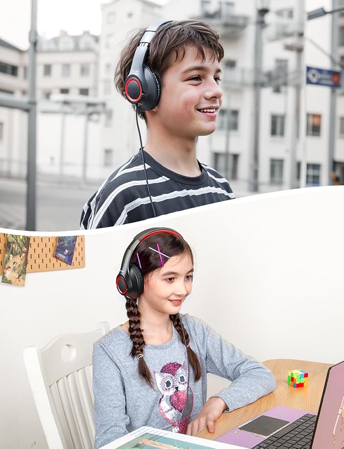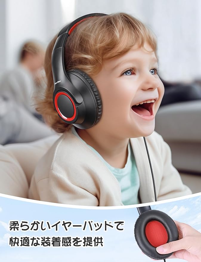 【柔らかい・調節可能】柔らかいイヤーパッドと調節可能なヘッドバンドにより、ヘッドフォンは子供の頭の形に完璧にフィットし、より快適に着用できます。