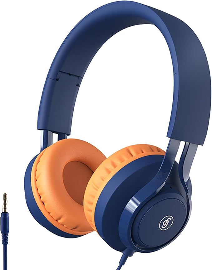 AGPTEK 子供向け ヘッドホン ヘッドフォン マイク付 折りたたみ リモート学習 オンライン授業 有線 安全な音量設定 入学祝い 聴覚保護 遮音 3.5mmオーディオジャック スマートホン ゲーム機 PCなど適用 収納ポーチ付け