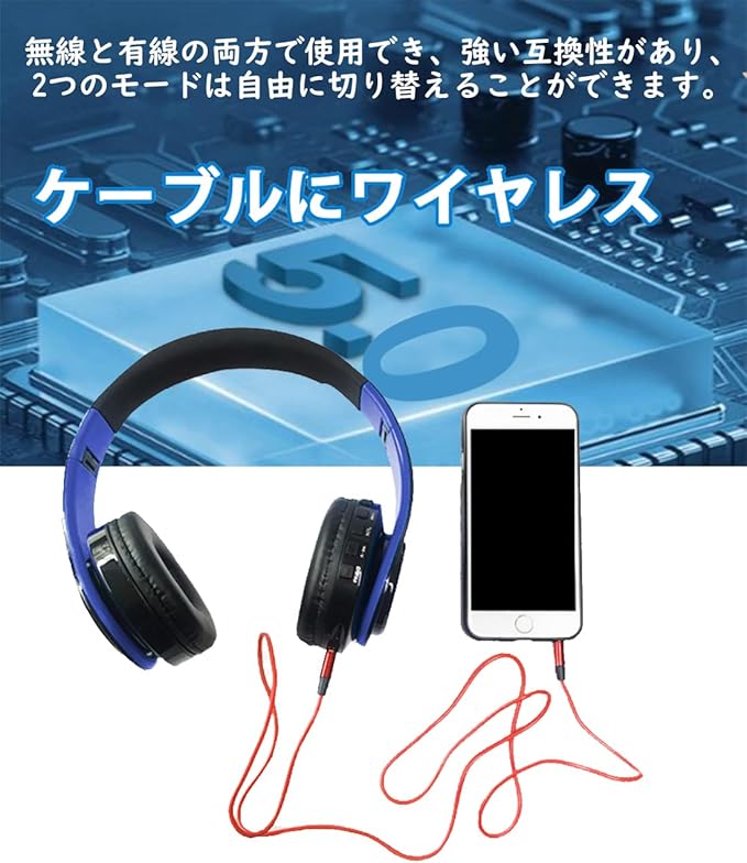 【有線と無線両用】無線と有線の両方で使用でき、強い互換性があり、2つのモードは自由に切り替えることができます。3.5mmオーディオケーブル付き、有線イヤホンとして使える。ヘッドホン内蔵のマイクとイヤーカップにあるコントロールボタンを利用して、簡単に電話を受けることが可能で、楽しい通話をサポートいたします。