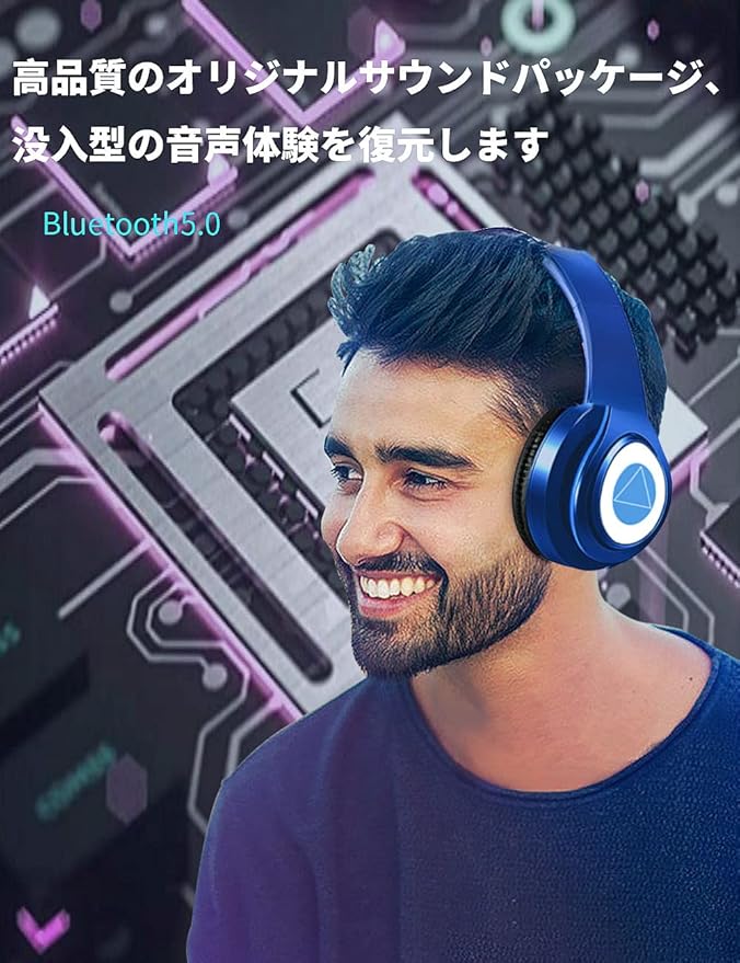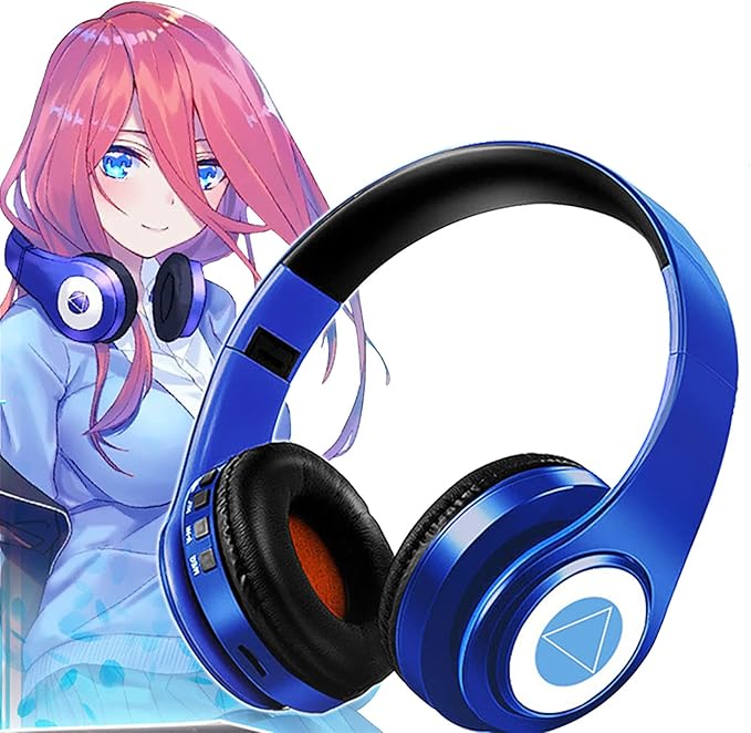 中野三玖 イヤホン 日本語 オリジナルボイスパック コスプレ ヘッドフォン Bluetooth 5.0ヘッドフォン 折りたたみ式 ワイヤレス マイク内蔵 カード挿入可能 有線に変換可能 イヤホン アニメ風 音楽 クリスマス ハロウィン イベント 大人 学生 プレゼント 日本語説明書(ブルー)
