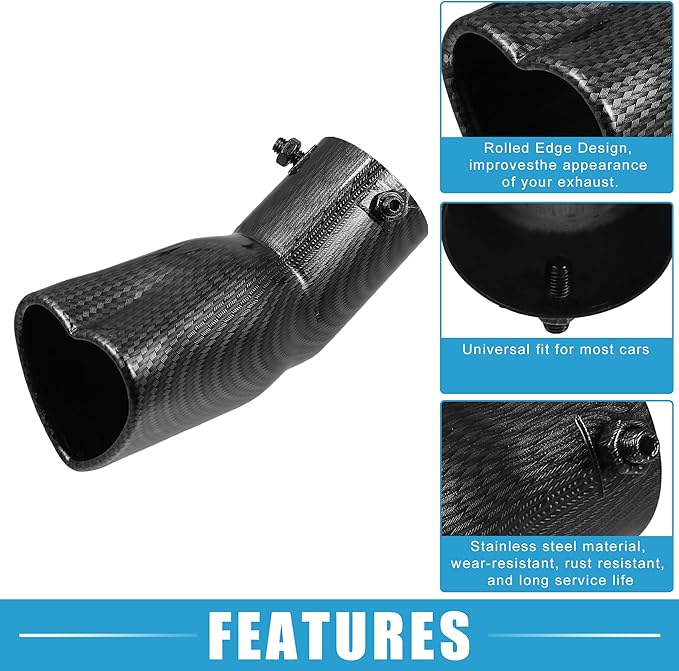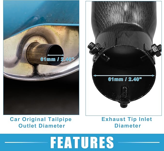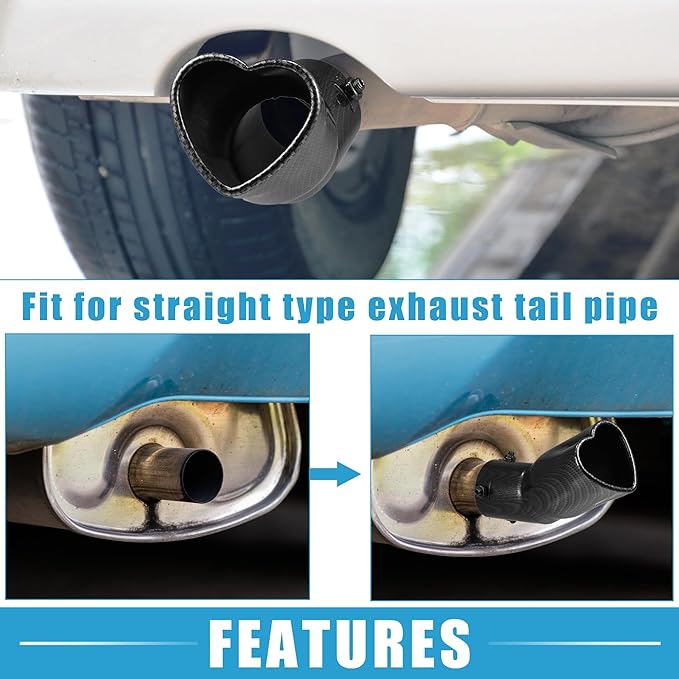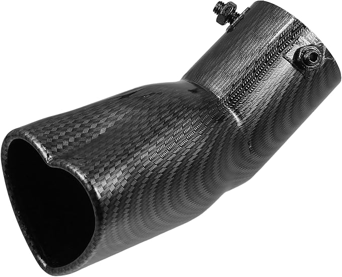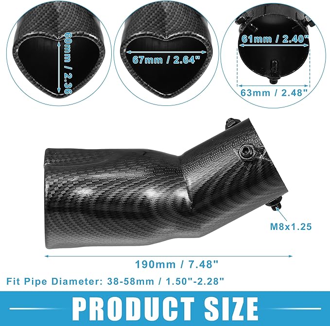 車用排 気管 ハート型 テールパイプ 2.48インチ外径 2.64x2.36インチ出口 7.48インチ長 カーブボルトオンマフラーチップ メタルカーボンファイバーパターン ブラ ック