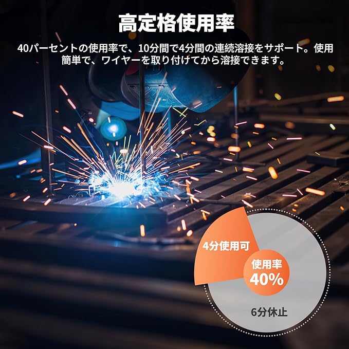 「小型・持ち運び便利」手持型半自動溶接機の重量(4.2KG)軽くて、持ち運びしやすい、家庭用のサイズ。本機の前後には放熱のプラスチックが設計されて、過熱保護機能を搭載され、安全で快適な環境で効率的に作業できるようにします。