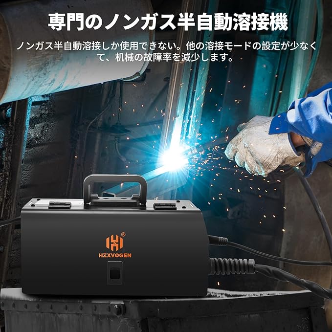 H HZXVOGEN ノンガス 半自動 溶接機 半自動溶接機 100V/200V 兼用 MIG溶接機 145A インバーター搭載 定格使用率40% 軽量 小型 軽工業 家庭での DIY プロジェクト 簡単な修理に適しています 日本語説明書 MIG145