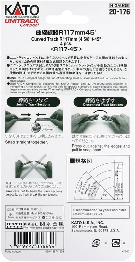 KATO Nゲージ ユニトラックコンパクト曲線線路R117-45 4本入 20-176 鉄道模型用品 ( 4)