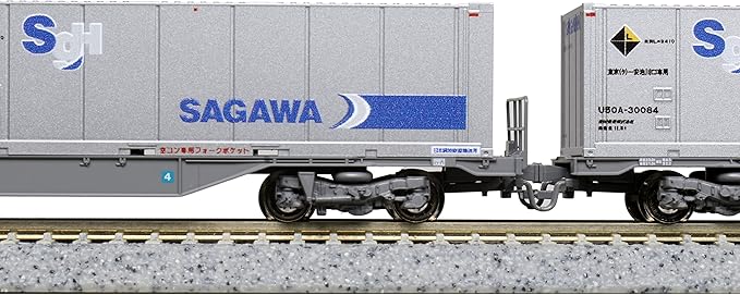 積載されているU50Aコンテナは、レイアウトに貨物駅プレートやトップリフターを加えて、積み下ろしシーンを再現するのも楽しみ方のひとつです。