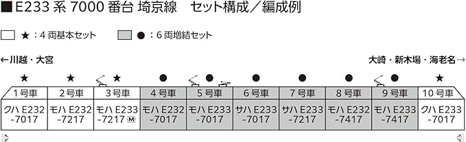 埼京線で活躍するE233系7000番台をセット構成を変更して製品化。