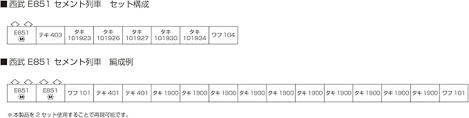本製品を2セット揃えることで、E851形重連牽引のフル編成を再現可能です。