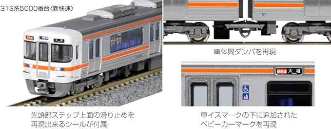 313系5000番台 増結セットのパッケージに、313系5000番台 基本セット、5300番台 2両増結セットの車両を収納可能。
