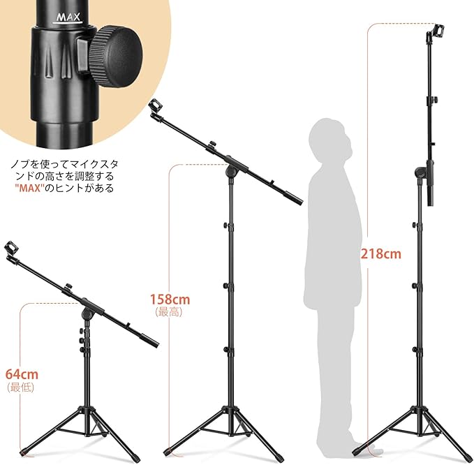 【高さ調整可能】高さは約64~158cmまで自由に調整可能。ステージ、スピーチ、会議室、パーティー、結婚式、カラオケ、ライブ配信など、幅広いシーンで活躍します。