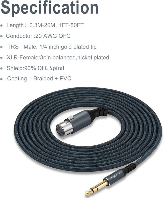 Twozoh XLRメスから1/4 TRSケーブル1M, 編組6.35mmステレオジャック3ピンXLRマイクケーブルにバランスが取れています (Profesional/Hifi)