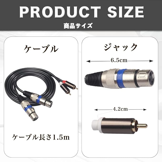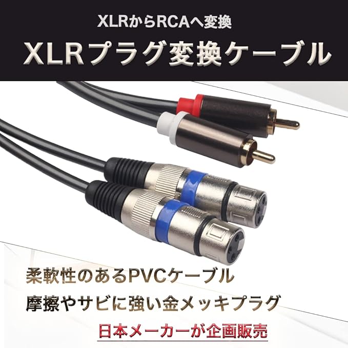 【幅広い互換性のXLR変換ケーブル】2RCAプラグから2XLRプラグへの変換ケーブルです。アンプやオーディオ機器などRCAプラグのデバイスからスピーカーなどに音声を伝達することができます。