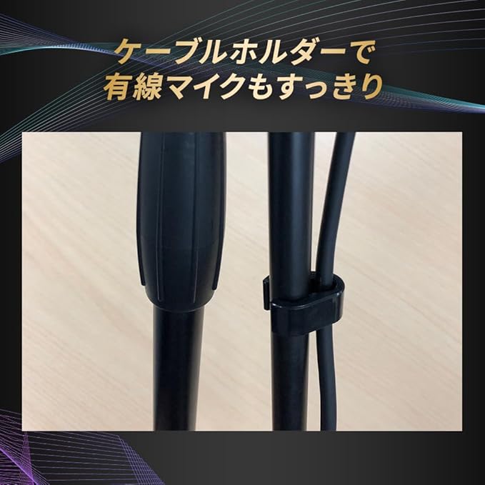 ■ブームアーム付マイクスタンド ■カラー:ブラック ■先端ネジ径:3/8インチ ■付属品:マイクホルダー(3/8インチ→5/8インチ変換ネジ取付済) ■高さ調整範囲:約96cm~約155cm ■ブームアーム長さ:約76cm ■折り畳み時全長:約95cm ■重量:約1.5kg