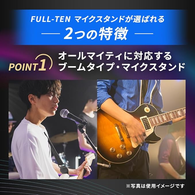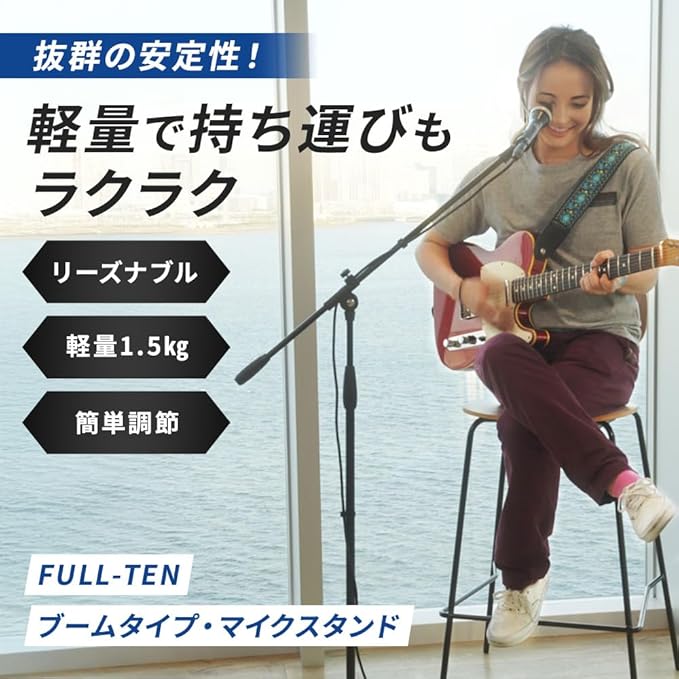 ブームタイプ マイクスタンド ブラック ヒビノ FULL-TEN オリジナル FT-MST-BM | ブームスタンド 三脚 ボーカル ライブ イベント スピーチ 司会 弾き語り 黒 マイクホルダー付属