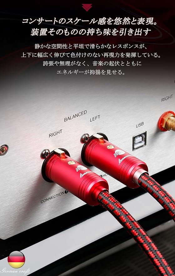 【安定性】アルミ合金シェルと純銅金メッキプラグを採用され、信号劣化に強く安定したデジタルオーディオ信号伝送を実現します。