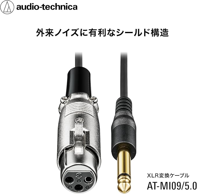 オーディオテクニカ XLR ケーブル マイクケーブル (XLRメス - φ6.3mmモノラル標準プラグ) 5.0m ダイナミックマイク ミキサー アンプ オーディオケーブル 【国内正規品】AT-MI09/5.0