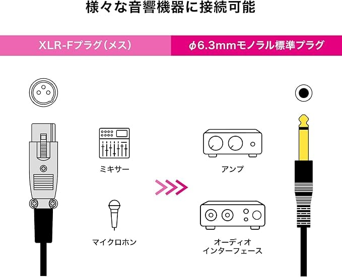 音質と使いやすさを両立したオーディオケーブル。 XLR-Fプラグ−φ6.3mmモノラル標準プラグ