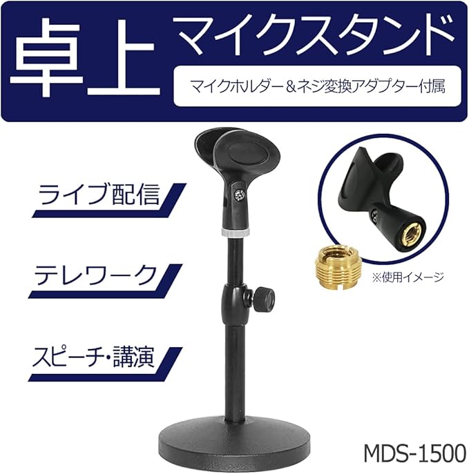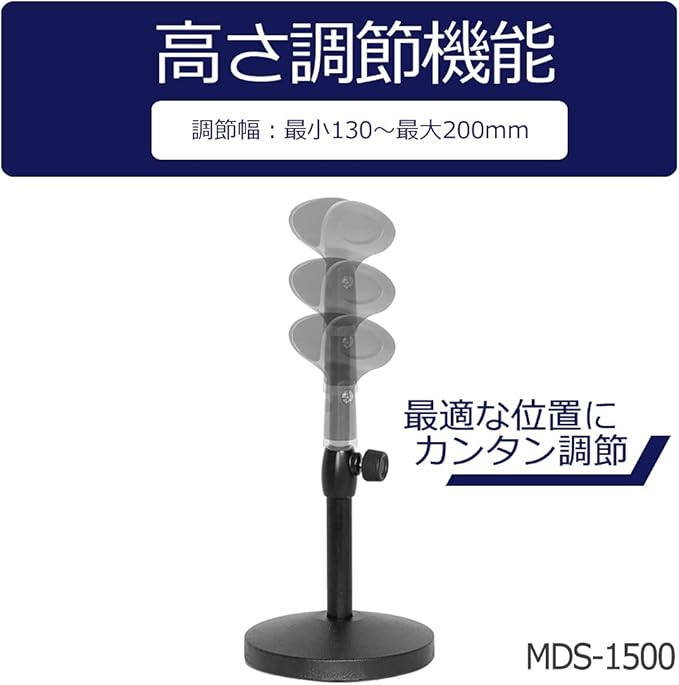 KC 卓上マイクスタンド 高さ調節可能 MDS-1500/BK ブラック (マイクホルダー付)