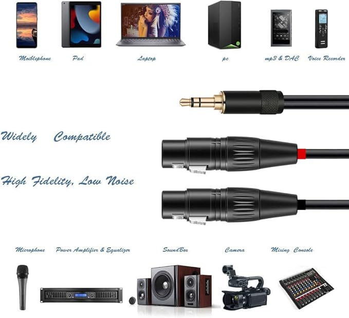 ipovoq 3.5mm to xlr 2 cable 3.5mm to xlr メス 2 ケーブル 3.5 mm キャノン 変換 xlr 3.5mm ステレオ 3ピン xlr 3.5mm 変換 メス 3.5 xlr 変換アダプタ xlr メス to 3.5mmオス キャノン ミニ ジャック ケーブル キャノン ケーブル xlr 変換ケーブル 3.5 キャノン コネクタ xlr オーディオケーブル