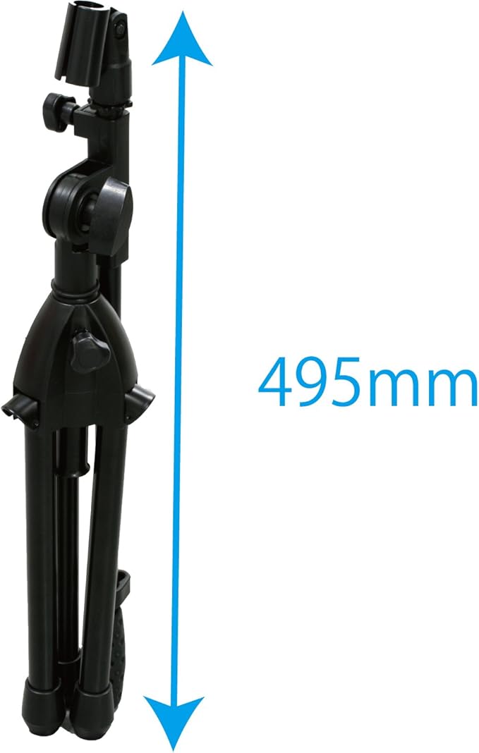 高さ310mm、ブーム部長さ425mm と低い位置からのマイキング、宅録で活躍するサイズです。また、ブーム部の取り外しが可能で、高さ205mm のショートスタンドとしても使用可能。マイクホルダー、ケーブルタイ、キャリングバッグ付