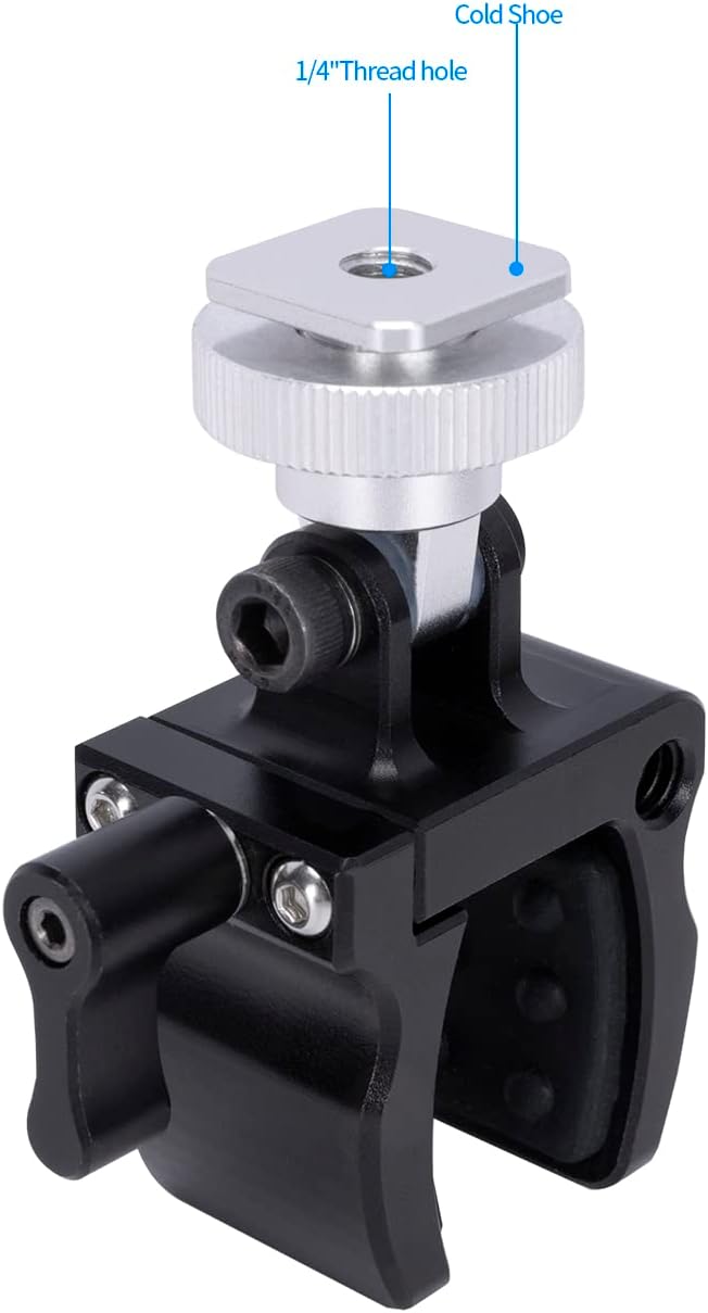 【アップグレードマイククリップ】:ガンマイクや懐中電灯をカメラに取り付けるため、設計されたものです。マイクホルダーはアルミニウム合金で、内部に滑り止めシートがあり、コールドシューが付いており、丈夫で耐久性があります。マイククリップはつまみ調整設計を採用しており、はさむ範囲は直径18.5-35mmマイクロフォン対応できます。マイクの角度を調整することができます。