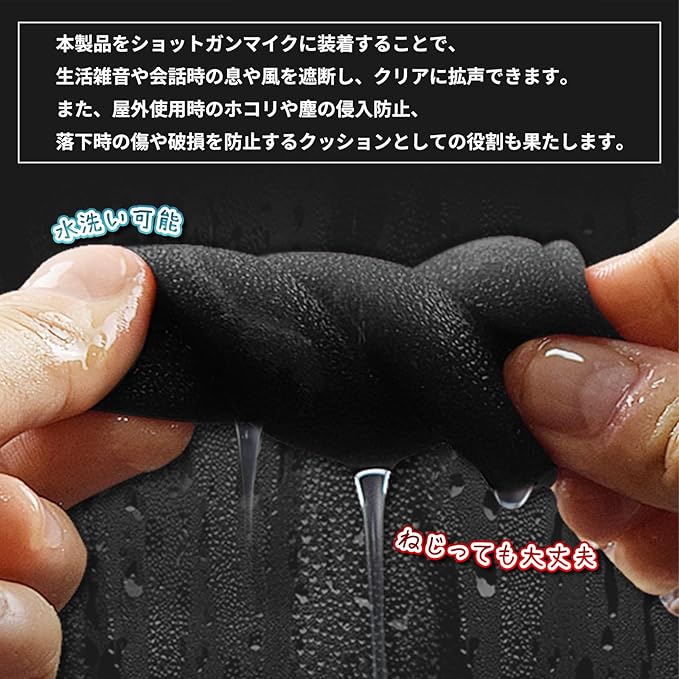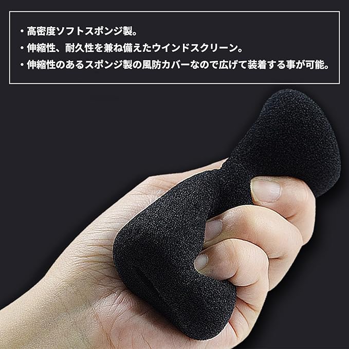 高密度ソフトスポンジ製、伸縮性で、耐久性と長持ちを兼ね備えたウインドスクリーンです。 伸縮性のあるスポンジ性の風防カバーなので若干のサイズの誤差があっても広げて装着する事ができます。