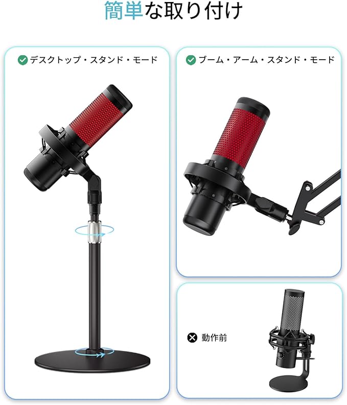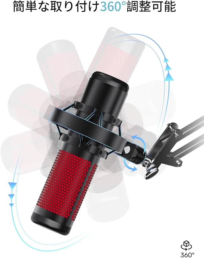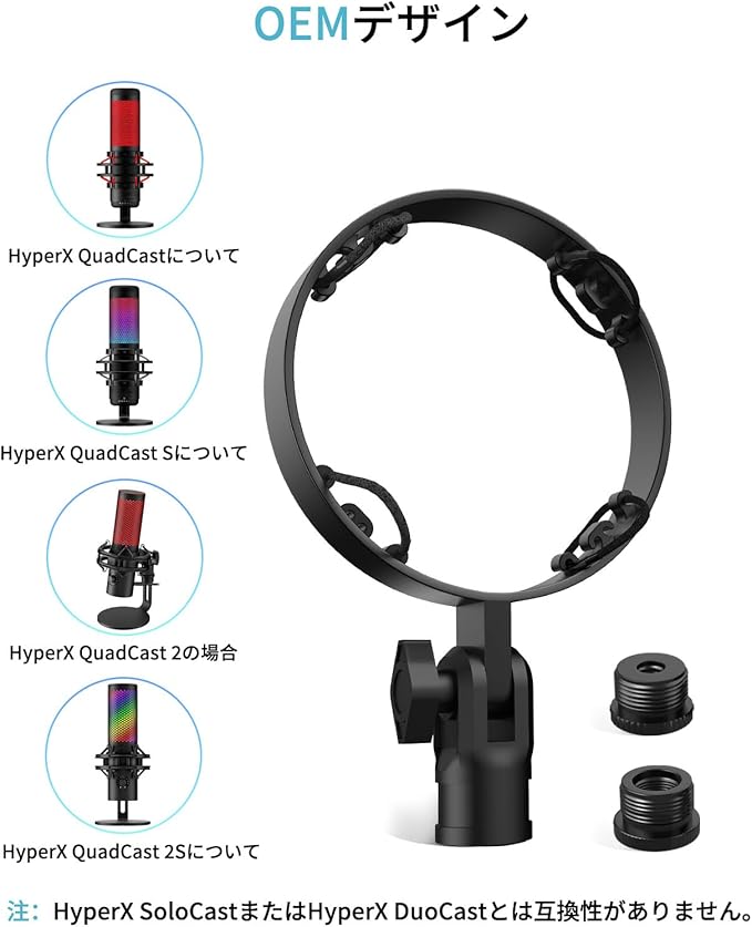 【Hyper QuacCast マイク専用】2025 アップグレード版防振サスペンション弾性ショックマウント、スタンド。ネジアダプターを同梱。HyperX QuacCast Microphone に完全対応します。