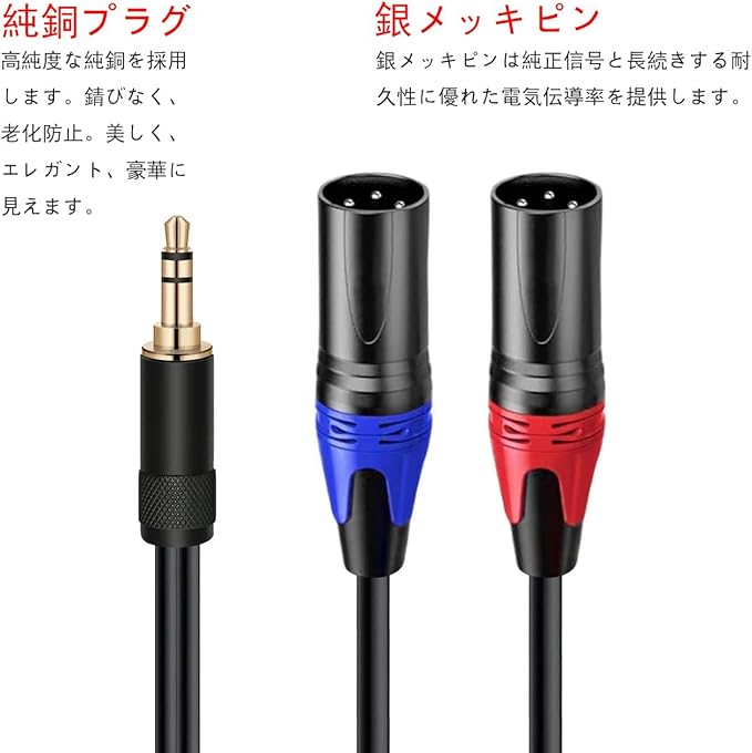 xlr ミニピン 変換 : 3.5mm プラグ は導電率に優れた24k 金メッキプラグを採用し、音質の劣化を防止し、接触抵抗を抑える 3.5mm プラグ です。音質の損失を最小に抑えて原音に最も近い音を再現することができます