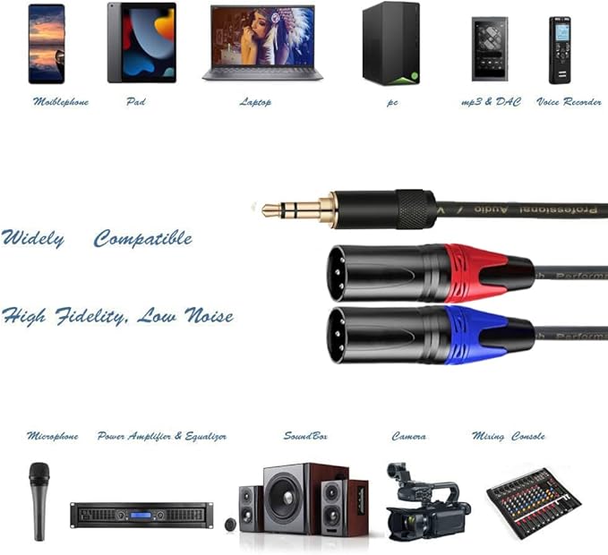 xlr 3.5mm ケーブル :二重シールドで 、電気ノイズを隔離し、音質を大幅に改善。柔軟性を向上させ、その上、明瞭さを追加し、よりクリーンで透明感のあるサウンドを提供する 3.5 mm xlr 変換 ケーブル