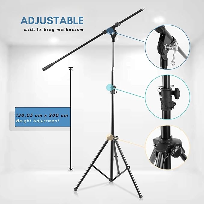 【Pyleヘビーデューティーマイクスタンド】 - 高さ調節可能130cmから200cmまでの高さ、伸縮可能な長さ75cmのブームアーム および安定した三脚ベース - Tバー調整ポイントPMKS56でクラッチ
