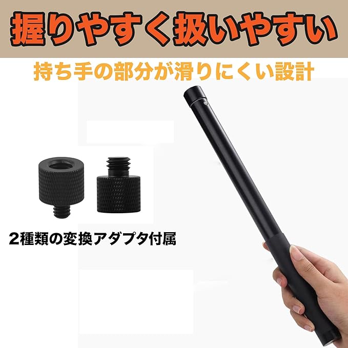 変換アダプタ付属:1/4メスから3/8オスに変換するアダプタ、3/8メスから1/4オスに変換するアダプタの2種類が付属しているため、お手持ちの機材を自由に取り付け可能です。