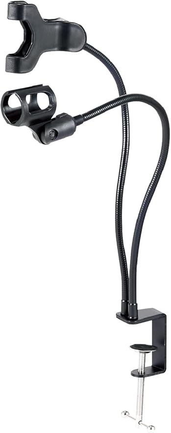 これひとつでスマホもマイクも固定できる、スマホホルダー付きグースネック型マイクスタンドです。