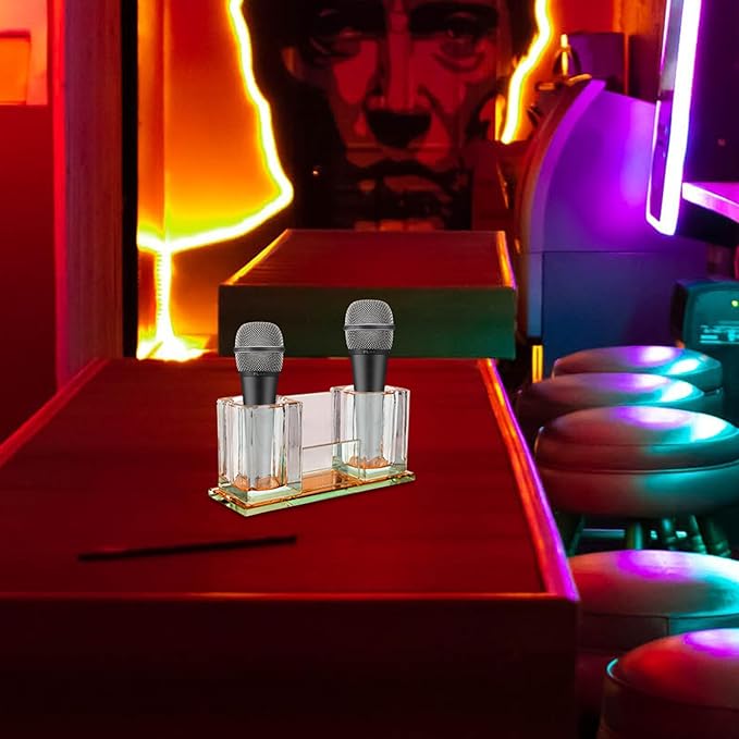 Lurrose デスクトップ マイクスタンド アクリル素材 卓上ワイヤレスマイクホルダー 音響機器用 安定したマイク収納 スタジオや家庭用に最適 7.6X3.5X2.6インチ