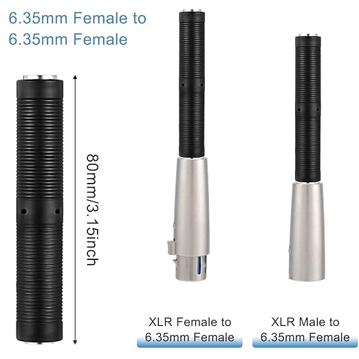 パッケージ内容: XLRメスから6.35mmオスアダプター2個。 XLRオスから6.35mmオスアダプター2個。 6.35mmメスから6.35mmメスアダプター1個。