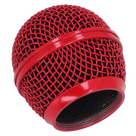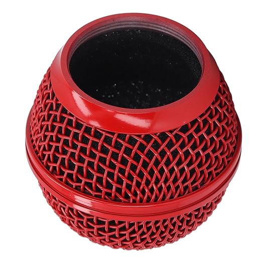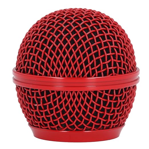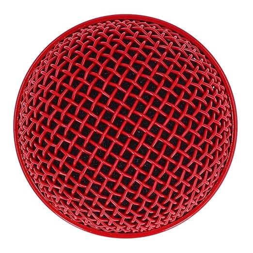 マイクグリル交換用、防錆メッシュマイクグリルヘッドステンレススチールノイズリダクションコンパクト内蔵フォームウィンドスクリーン SM58LC用 (赤)